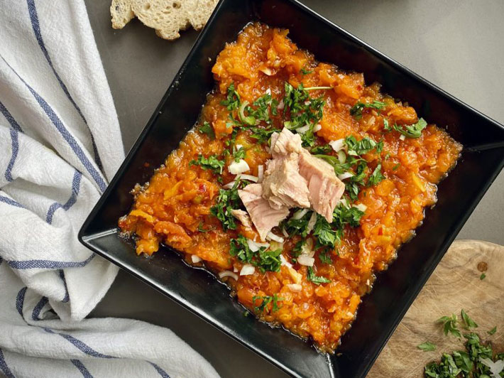 a fine dice of pickled vegetables and raw vegetables During the orange blossom picking season in the orchards of Dar Chaâbane El-Ferhi, women prepared a spring salad that combines the acidity of pickled vegetables, the spiciness of harissa, and the crispness of raw vegetables: the zest…